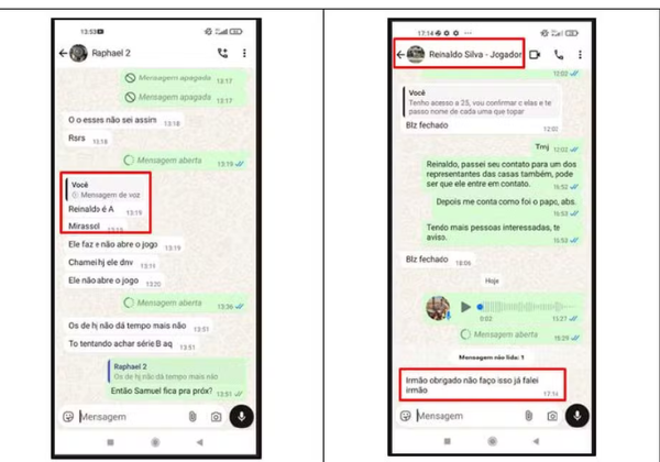 Nas conversas obtidas pela investigação, mostram os denunciados tentando aliciar jogadores de clubes das Séries B e C do Campeonato Brasileiro.