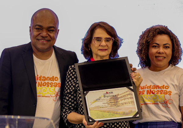 A senadora Damares Alves (Republicanos) foi homenageada, neste sábado (10), com a Comenda 2 de Julho da Assembleia Legislativa da Bahia (Alba) por sua luta pelos direitos humanos e defesa da família. A entrega da honraria foi feita pelo deputado estadual, Samuel Júnior (Republicanos), durante o evento ‘Cuidando das Nossas Crianças Contra o Abuso Infantil’, no Centro de Cultura Cristã, no bairro Costa Azul, em Salvador.